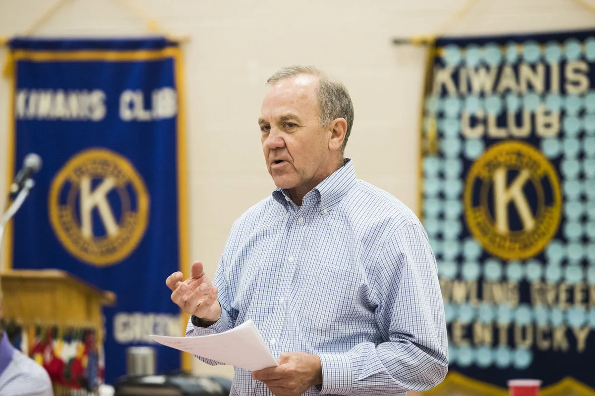 Ron's visit to the Bowling Green Kiwanis Club, featured on the front page of the Bowling Green Daily News.